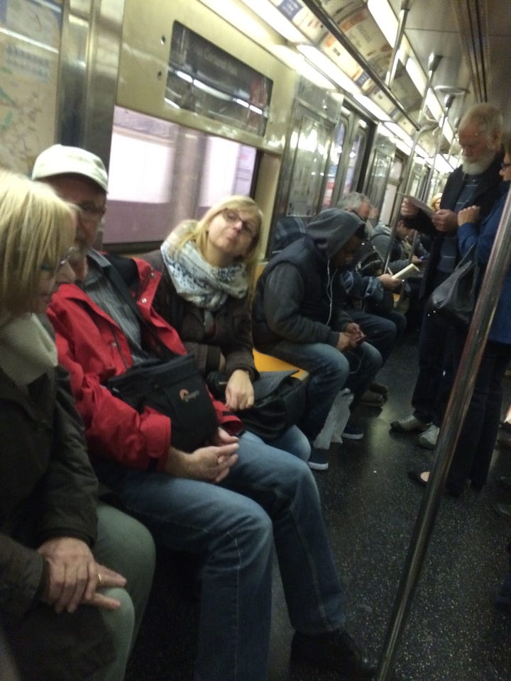 Nobody seems to recognize the celebrity in their midst. Letterman’s beard is ZZ Top-esque and a long way from his clean-shaven appearance on millions of TV screens every weekday evening. I slowly maneuver my iPhone to snap a photo while Letterman is looking down. Click. A couple stops later, I exit at 23rd Street and head west.