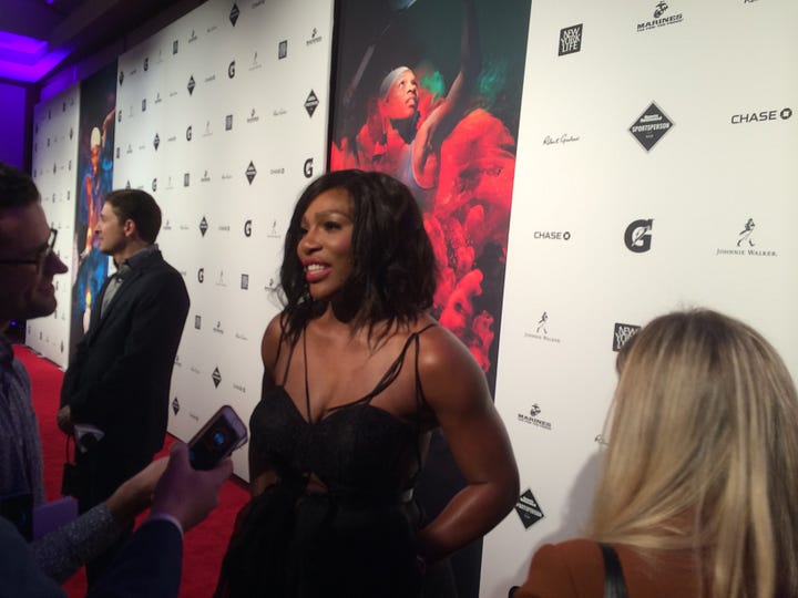 The tennis great, who had won the ’15 Australian Open, French Open and Wimbledon – just falling shy of the calendar year “Grand Slam” – gets closer. And closer. A rep is parked beside Williams when she gets to me, and I’m on the clock — specifically, for 26 seconds. Go.